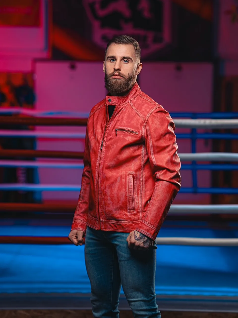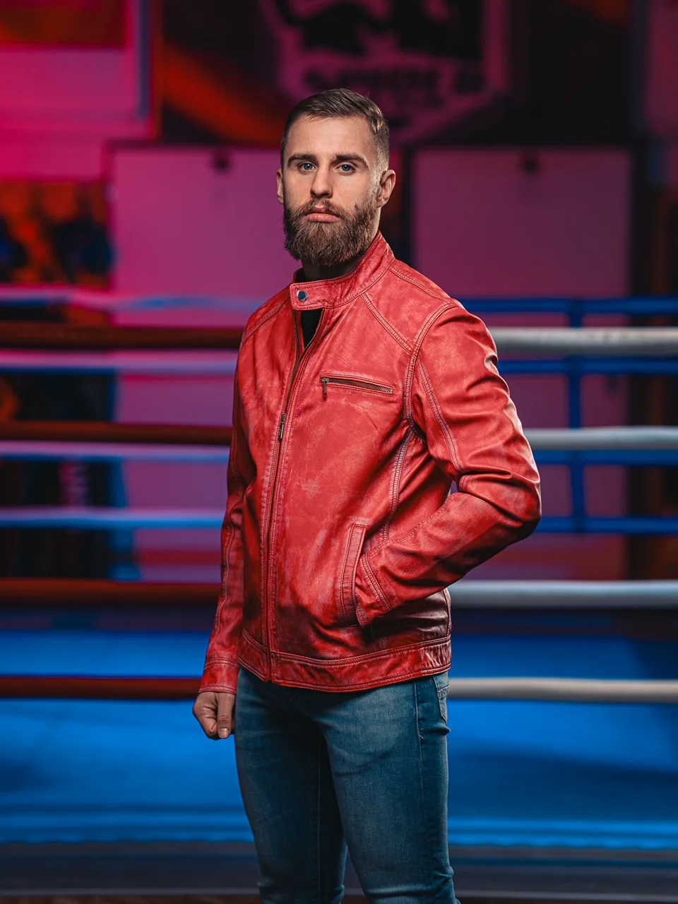 James 007 Red Denim – Leather Jacket