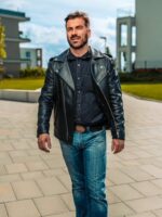 Meet our take on the classic biker jacket – crafted for those who appreciate leather that’s soft to the touch yet firm and durable. The signature angled zip closure creates bold lapels when open, adorned with subtle metal studs. A tailored collar at the top completes the look with matching detailing.